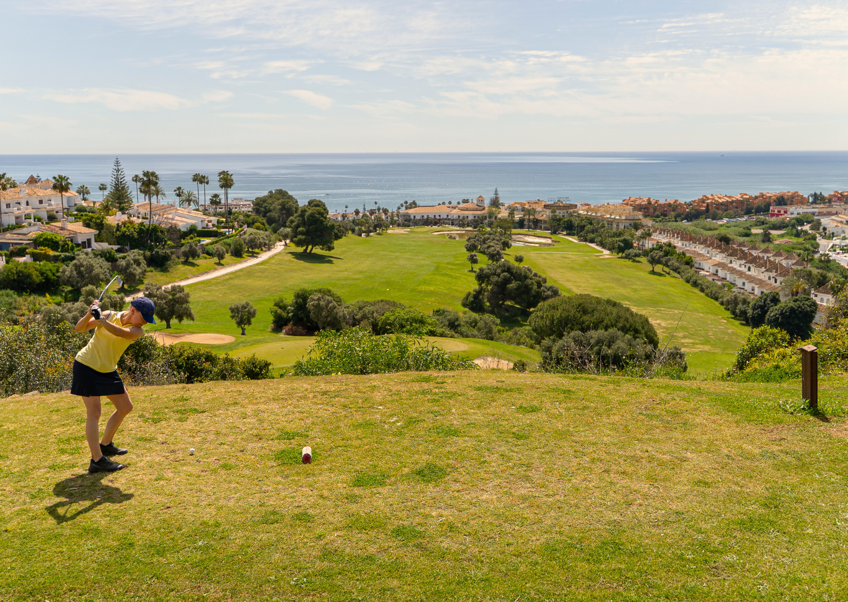 "At Duquesa Golf Course, designed by Robert Trent Jones and located amidst of a spectacular landscape, you will find 18 holes of entertaining fairways that will give you the opportunity to enjoy a round of golf under the sun with the breeze of the Mediterranean Sea.