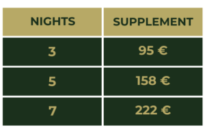 ✔ Less than 15 days before arrival: full amount of the stay or package will be charged